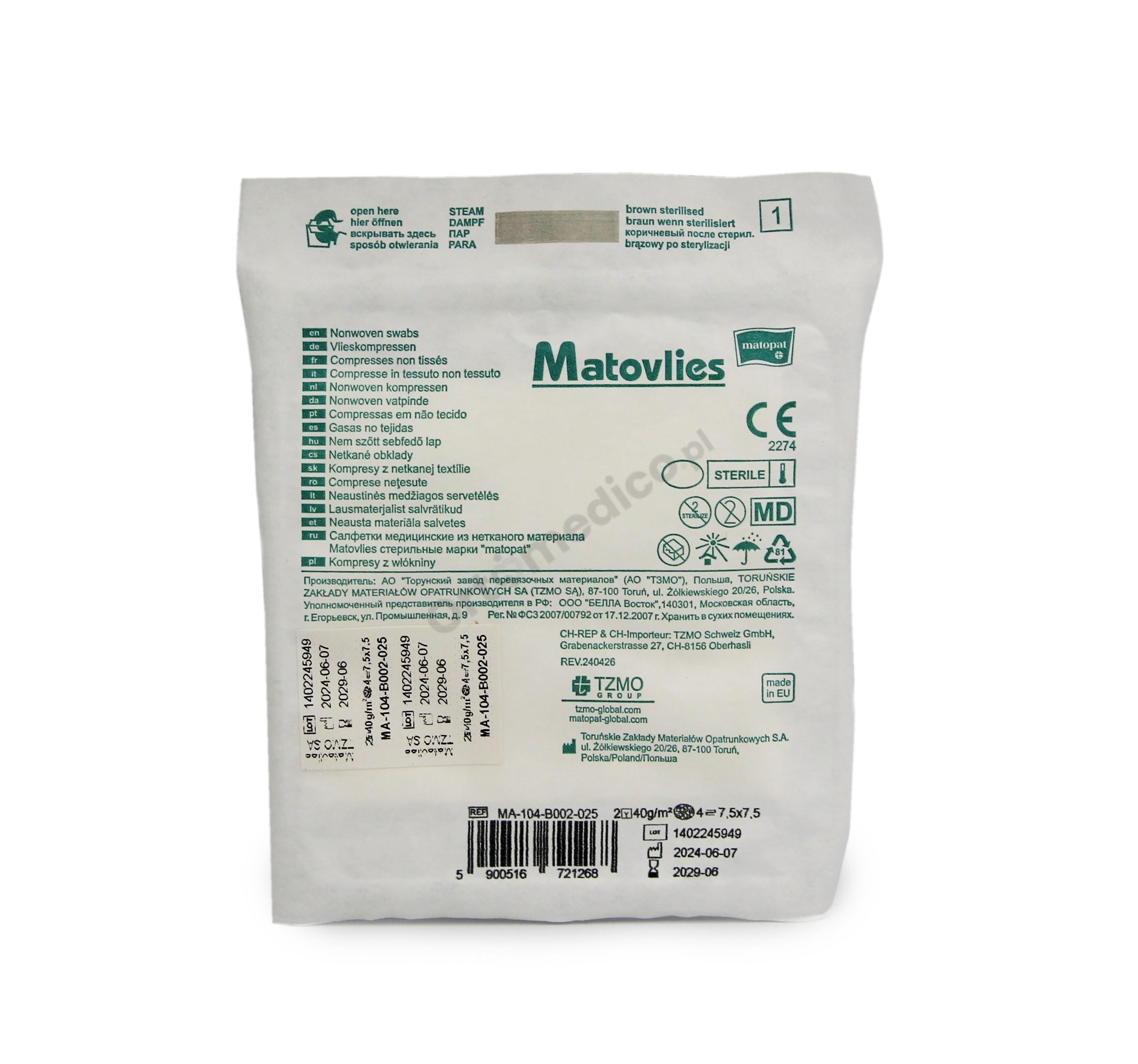 Kompres Włókninowy Jałowy z Nacięciem Y 7,5 x 7,5 cm 2 sztuki Matovlies
