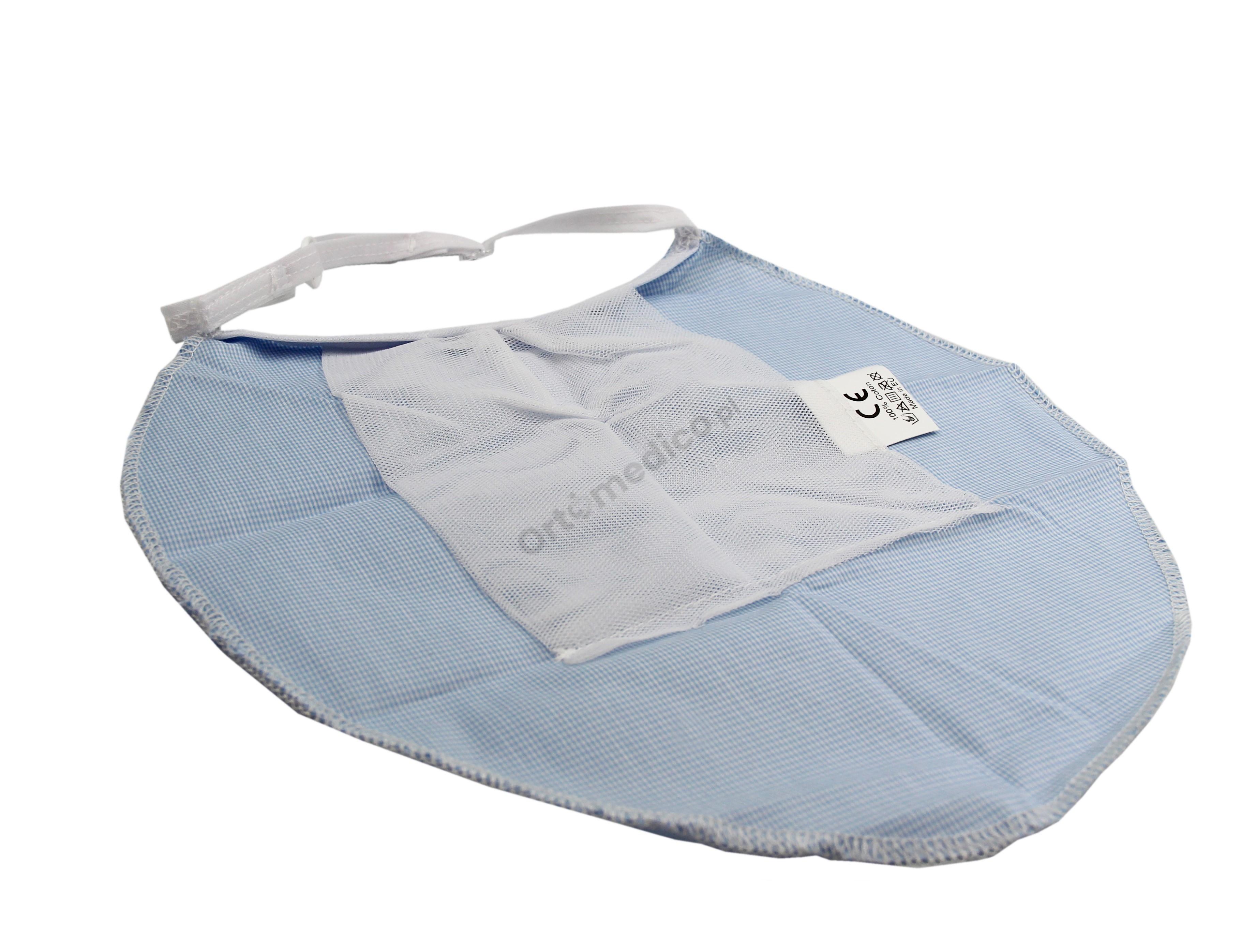 Chusta wykonana z przewiewnej tkaniny, zaprojektowano z myślą o komforcie i higienie. Posiadają specjalną siateczkę, która skutecznie oddziela apaszkę od otworu w szyi lub rurki, ułatwiając usunięcie wydzieliny za pomocą chusteczki higienicznej. Dzięki zapięciu na rzep i regulacji długości, chustę można dopasować do potrzeb użytkownika. Apaszka osłonowa spełnia rolę filtra wdychanego powietrza.