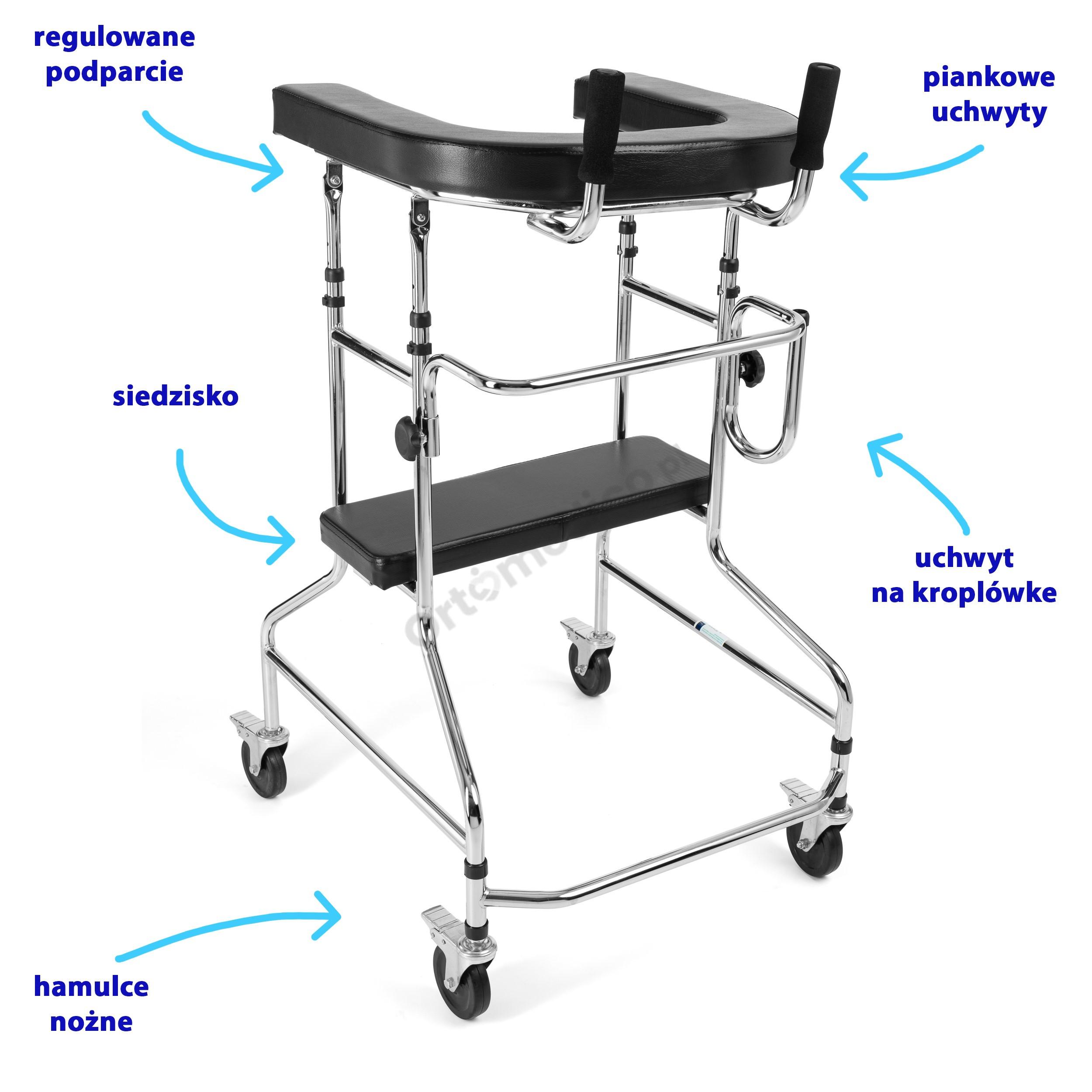 - Często polecany seniorom lub osobom po urazach ortopedycznych, którzy muszą stać i poruszać się bardzo ostrożnie.