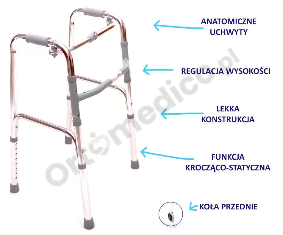 • Jako balkonik kroczący z przednimi kołami ułatwiający płynny ruch naprzemienny nóg