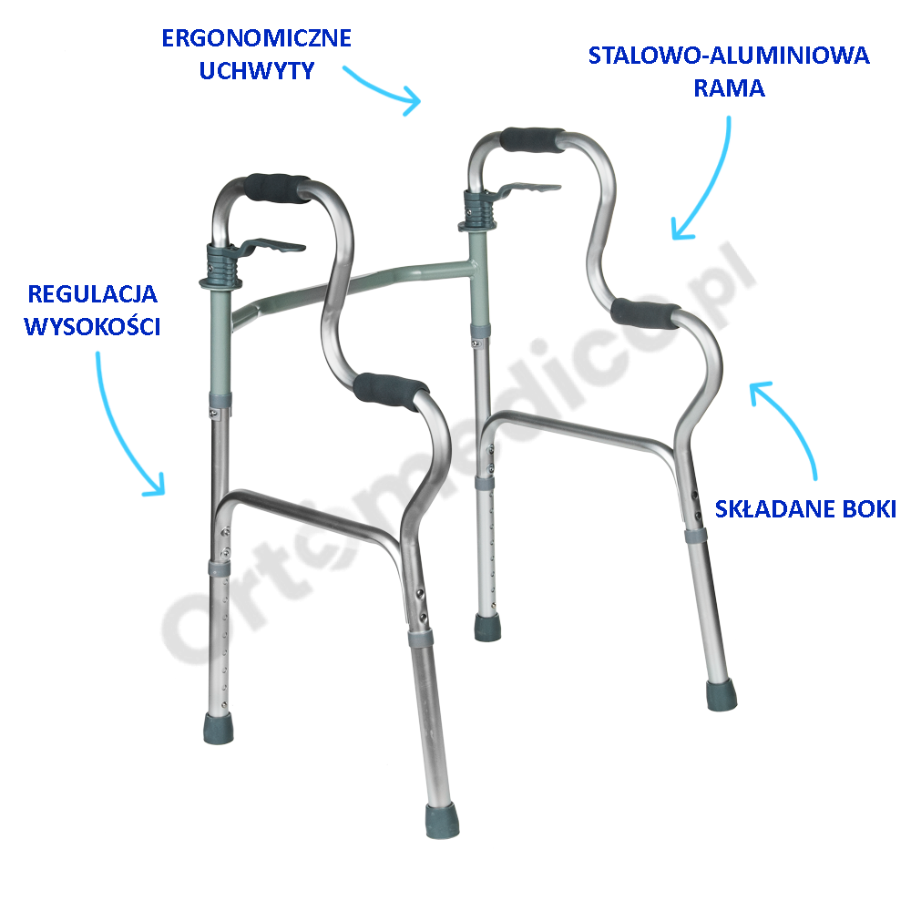 - Często polecany seniorom lub osobom po urazach ortopedycznych, którzy muszą stać i poruszać się bardzo ostrożnie.