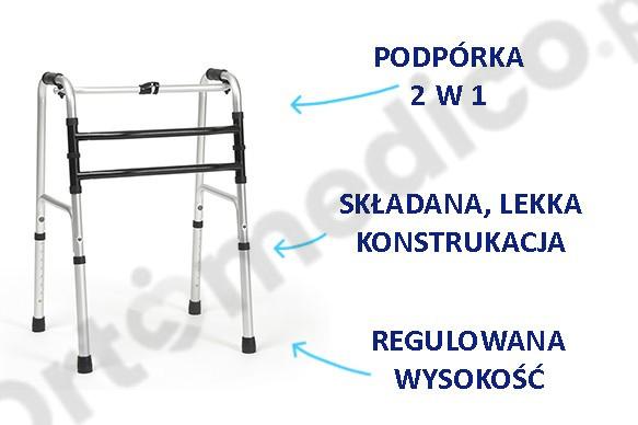 - Mechanizm "kroczący" pozwala na przesuwanie balkonika na zmianę z ruchem nóg, co ułatwia poruszanie się.