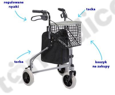 Tacka: Idealna do przenoszenia drobnych przedmiotów lub posiłków, co zwiększa funkcjonalność balkonika.