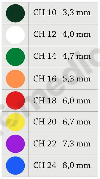 ➡️ oznaczenie kolorystyczne dla pojemności balona i średnicy cewnika