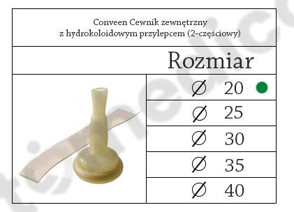 Produkt coloplast cewnik zewnętrzny conveen 2-częściowy występuje w pięciu rozmiarach: