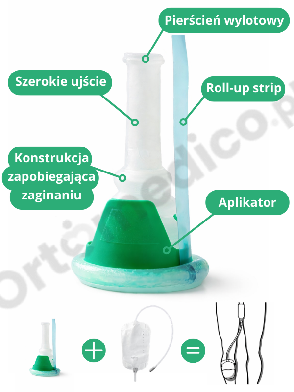 -antyskrętne harmonijkowe ujście zapewniające szczelne połączenie z workiem na mocz
