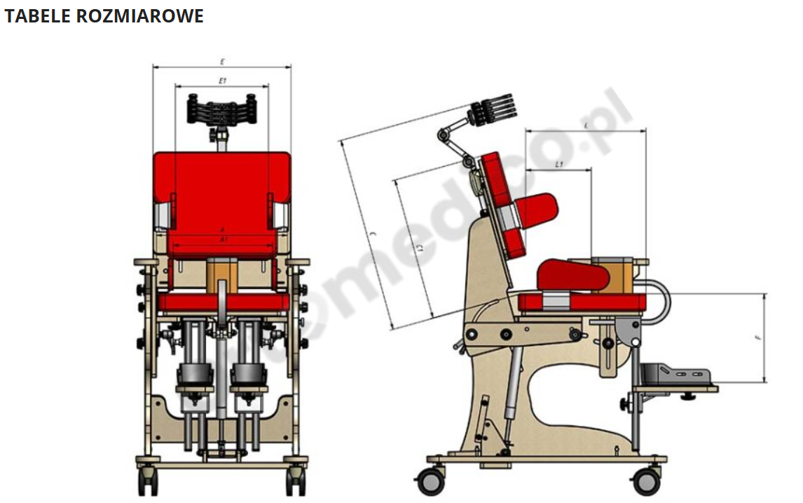 ·       Precyzyjna regulacja dla optymalnego wsparcia - regulowany zagłówek, peloty piersiowe i biodrowe zapewniają stabilizację tułowia i głowy. Stopki z regulacją 3D umożliwiają wielopłaszczyznowe ustawienie nóg, co wspiera korekcję pozycji dolnych kończyn w zakresie rotacji, odwiedzenia oraz przód-tył.