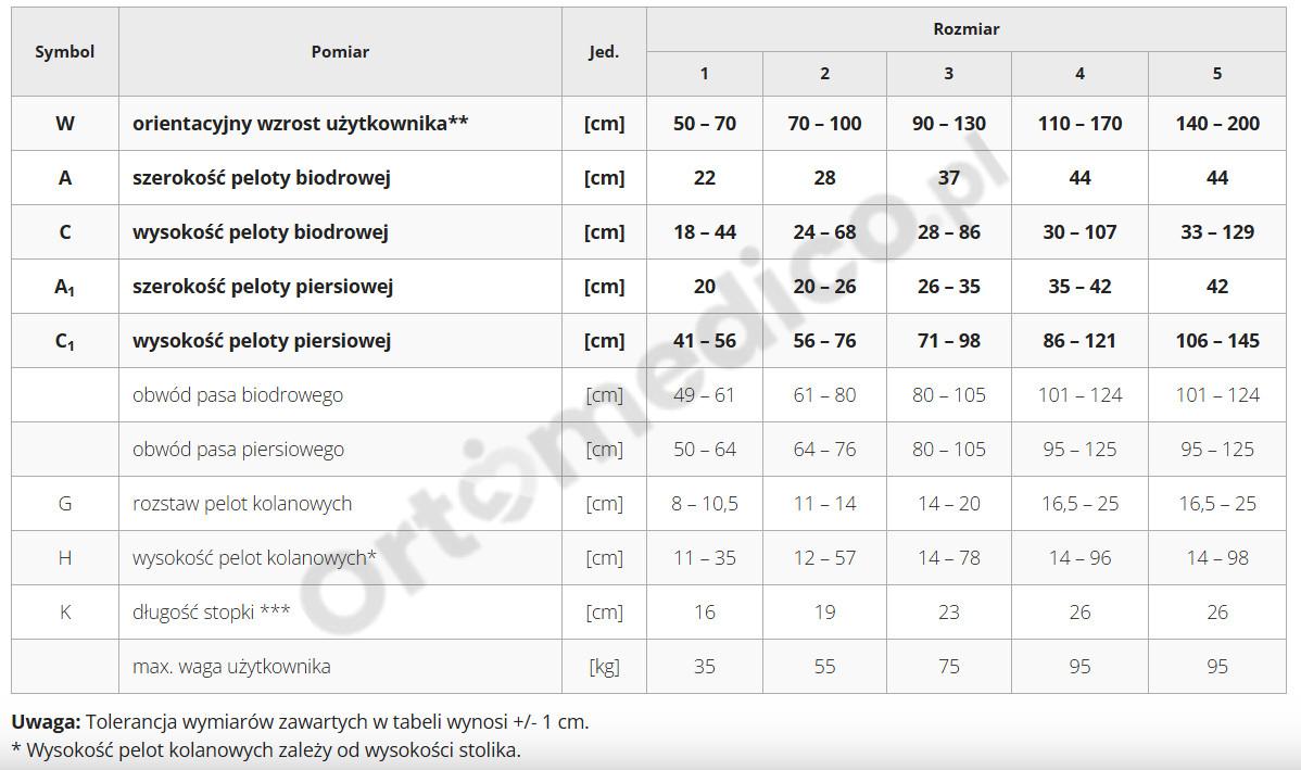 Pas piersiowy i biodrowy wyposażono w mocne taśmy Velcro, które ułatwiają szybką i wygodną regulację. Przemyślana konstrukcja pasa biodrowego umożliwia kontrolę rotacji miednicy oraz korekcję ustawienia w płaszczyźnie czołowej, co wspiera indywidualne potrzeby użytkownika. - Łatwe przemieszczanie