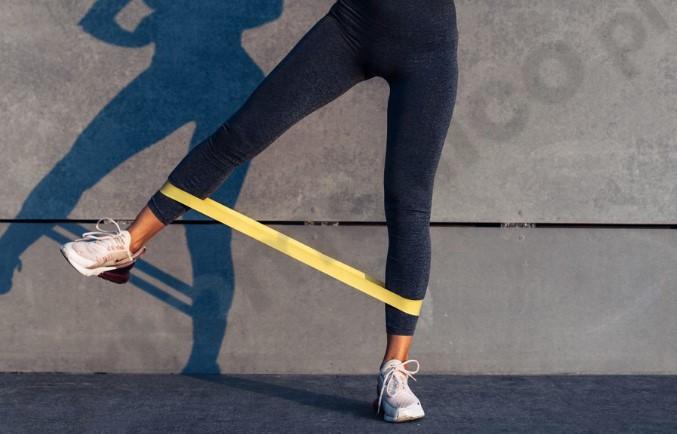Połóż się na boku, a produkt umieść w okolicach kolan. Ręce ułóż w takiej pozycji, w jakiej czujesz się komfortowo. Następnie unoś nogę ku górze, rozciągając taśmę.