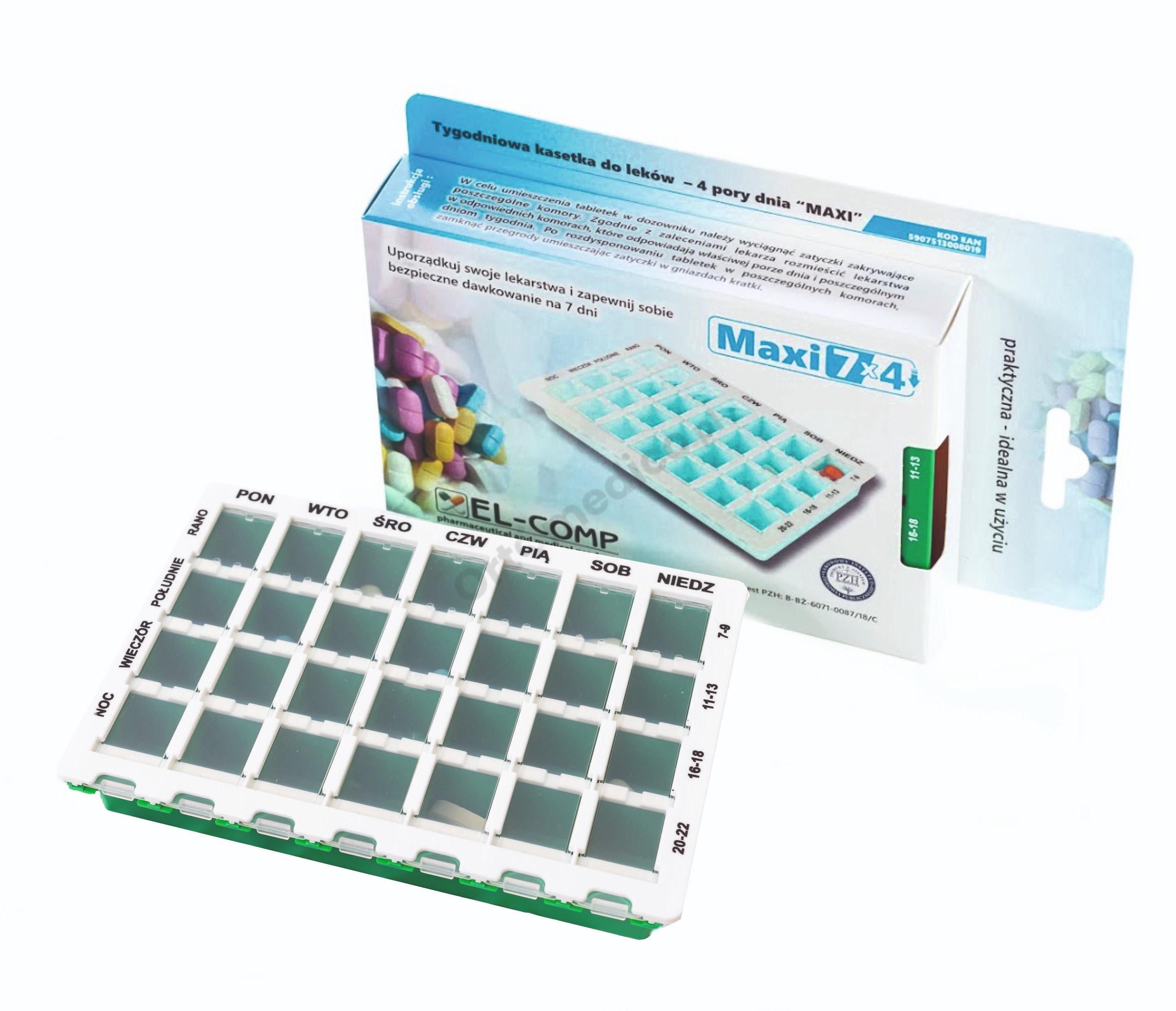 Tygodniowy Organizer na Leki Kasetka 4 Pory Dnia, Dni Tygodnia EL-COMP MACI