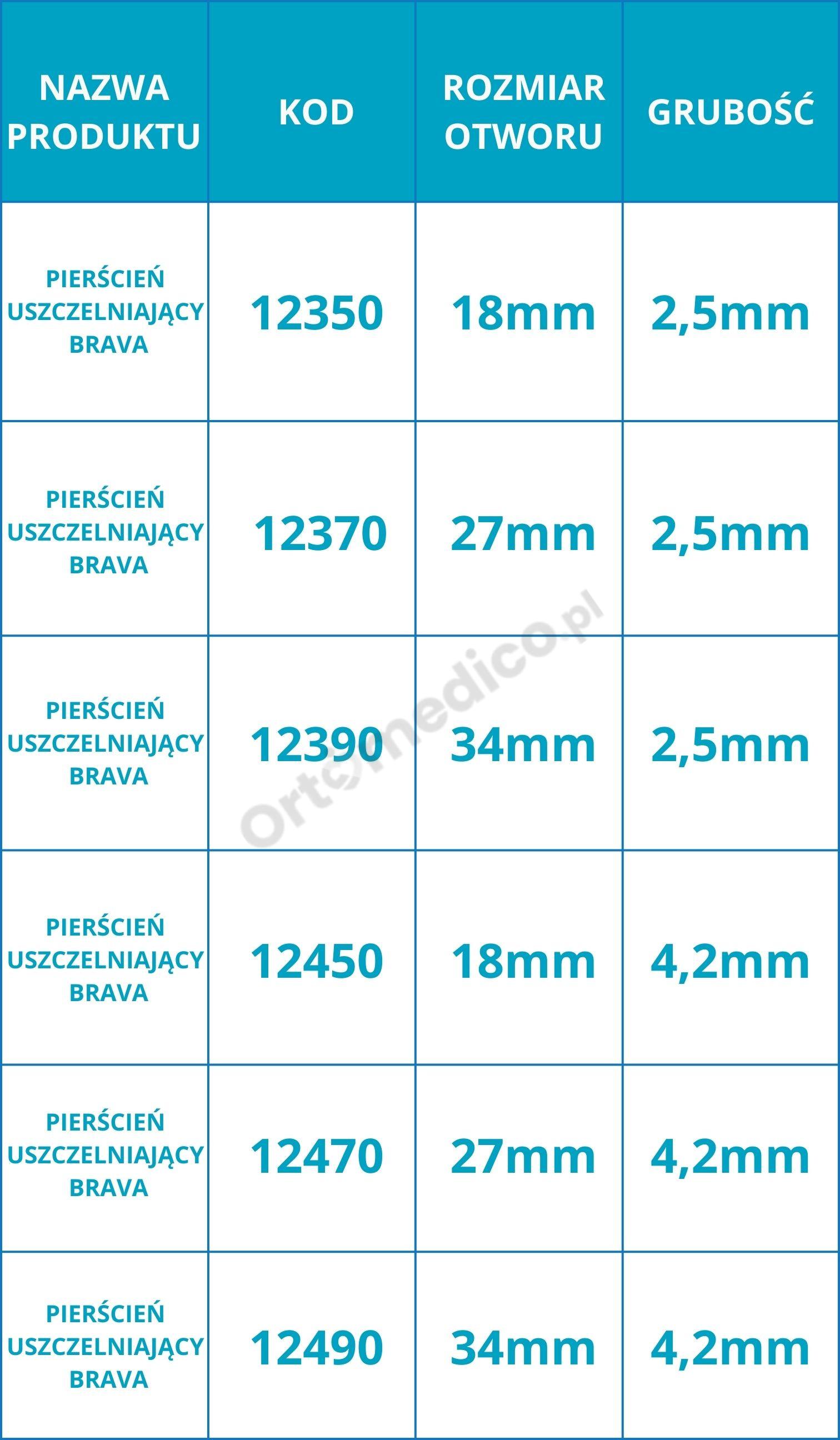 Dostępne warianty Brava® Ochronnego Pierścienia Uszczelniającego