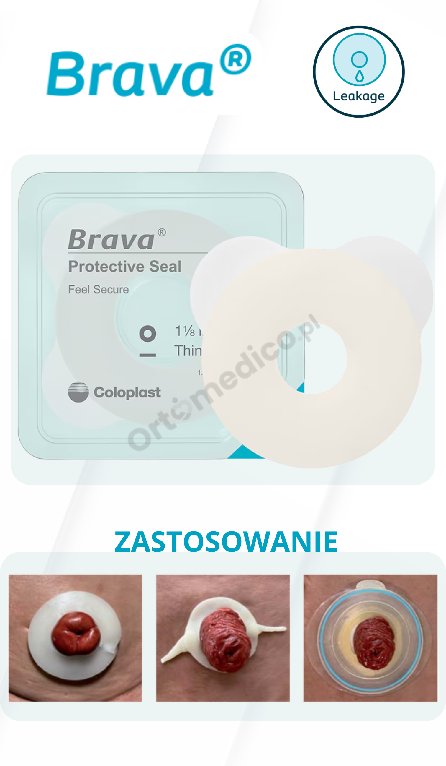 Brava® Ochronny Pierścień Uszczelniający od Coloplast to specjalistyczny wyrób medyczny zaprojektowany z myślą o osobach żyjących ze stomią. Dzięki swojej nowoczesnej formule oraz przemyślanej konstrukcji, pierścień skutecznie zabezpiecza delikatną skórę wokół stomii, zapewniając jej ochronę przed działaniem treści jelitowej lub moczowej oraz zapobiegając podciekaniu.