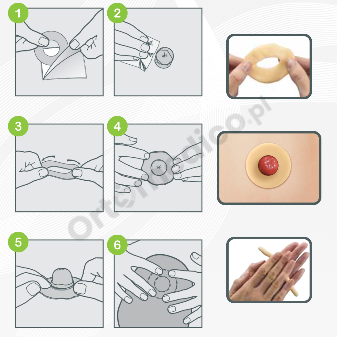 Nie wymaga ogrzewania – możesz go formować w dłoniach i dokładnie dopasować do kształtu stomii oraz przylegającej powierzchni skóry.
