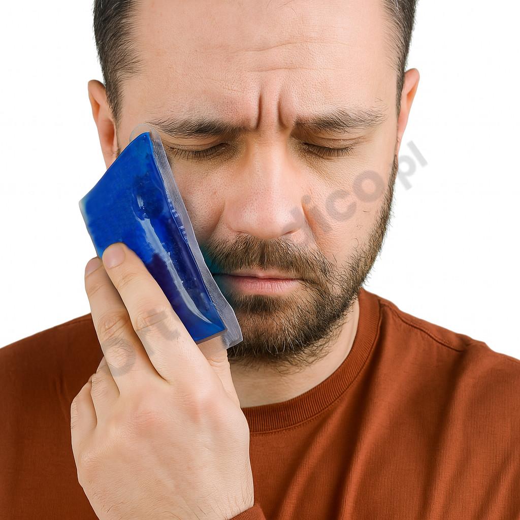 W celu szczegółowych informacji, najlepiej zaczerpnąć porady lekarza. Pamiętaj, stosować zimny kompres owinięty w cienką tkaninę, aby uniknąć bezpośredniego kontaktu ze skórą i zapobiec odmrożeniom.
