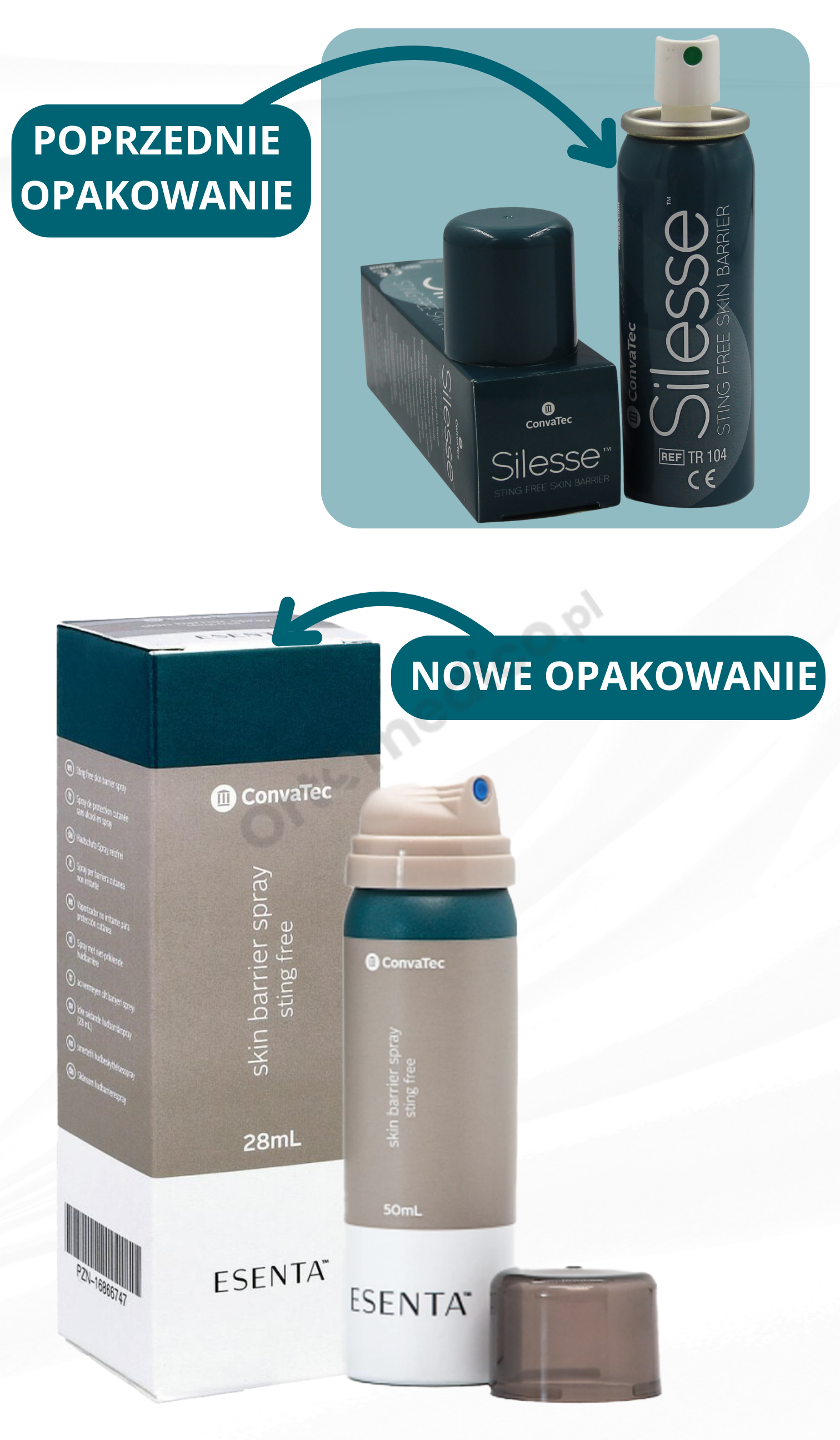 Zadbaj o swoją skórę z nowoczesną formułą Esenta! Spray ochronny do skóry wokół stomii Esenta to niezastąpiony produkt w codziennej pielęgnacji osób ze stomią – zarówno kolostomią, ileostomią, jak i urostomią. Dzięki lekkiej, silikonowej formule tworzy na skórze przezroczystą, oddychającą powłokę ochronną, która działa aż do 72 godzin, skutecznie zabezpieczając przed działaniem wilgoci, enzymów trawiennych, moczu oraz klejów stosowanych w sprzęcie stomijnym.