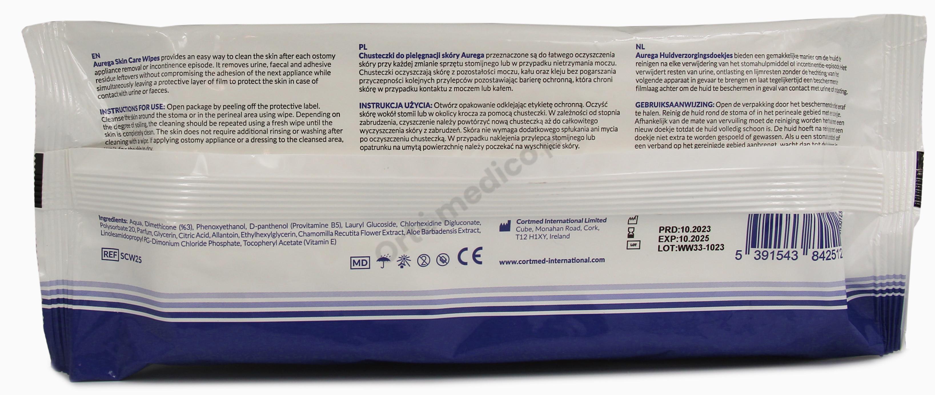 SCW25 Chusteczki Do Pielęgnacji Skóry Wokół Stomii Aurega Skin Care Wipes 19x,5x21cm 25szt. Cortmed