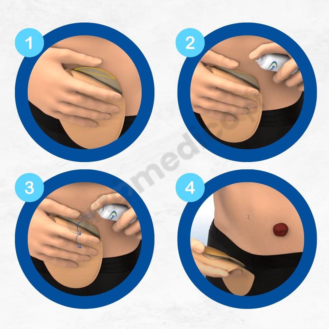Skraca czas wymiany przylepców – szybkie działanie sprayu sprawia, że usunięcie plastra jest błyskawiczne.