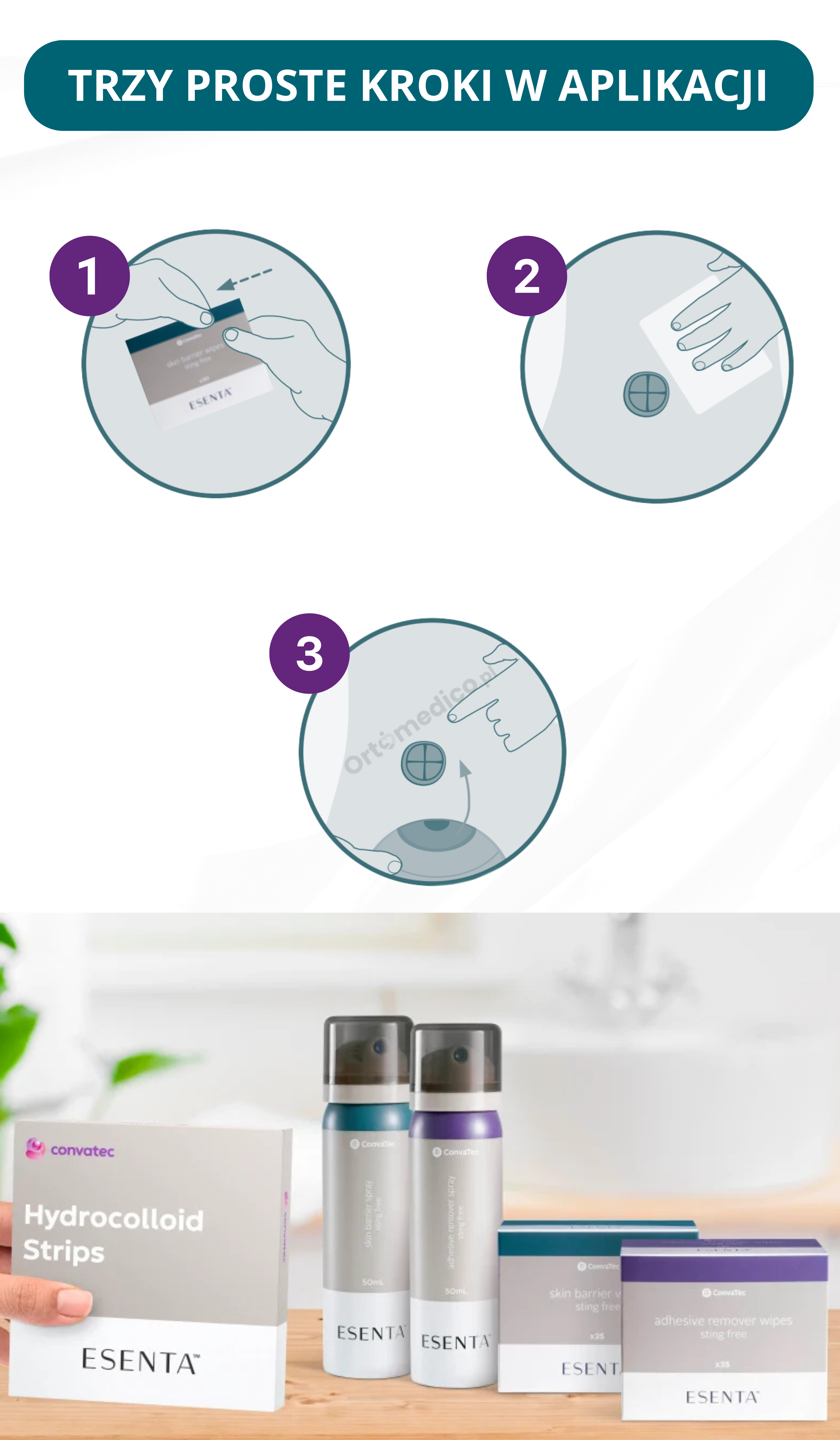 Chusteczki ochronne ESENTA™ to praktyczne rozwiązanie stworzone z myślą o osobach ze stomią, które oczekują niezawodnej ochrony skóry oraz wygody użytkowania. Dzięki silikonowej formule chusteczki tworzą cienką, oddychającą warstwę ochronną, która nie blokuje naturalnych funkcji skóry, a jednocześnie zapewnia skuteczną barierę na okres nawet do 72 godzin.
