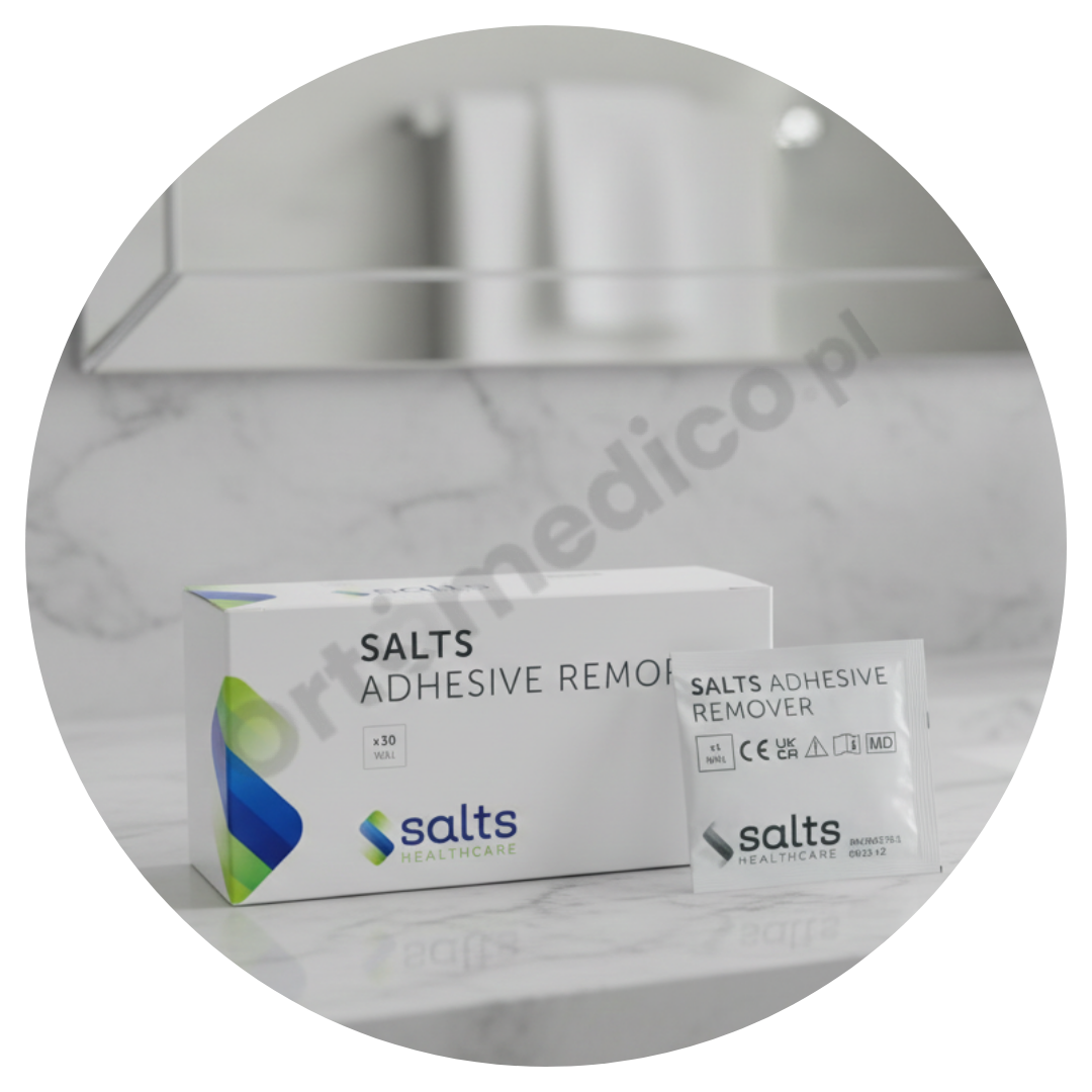 WA1 Salts Adhesive Remover to profesjonalne gaziki do usuwania kleju medycznego, przeznaczone dla osób ze stomią, które na co dzień korzystają z worków stomijnych, płytek i innych wyrobów samoprzylepnych. Produkt umożliwia bezbolesne, szybkie i bezpieczne usuwanie przylepców stomijnych, bez ryzyka podrażnień i uszkodzeń skóry.