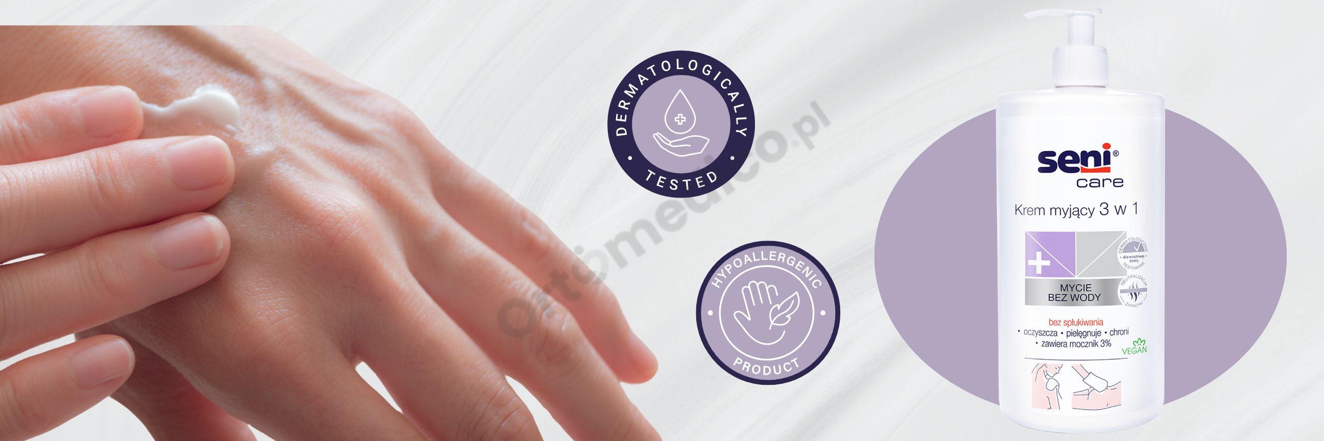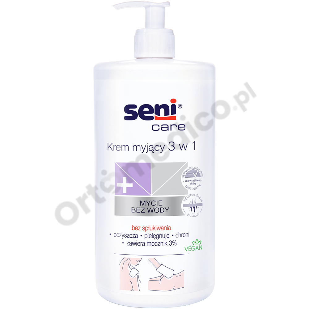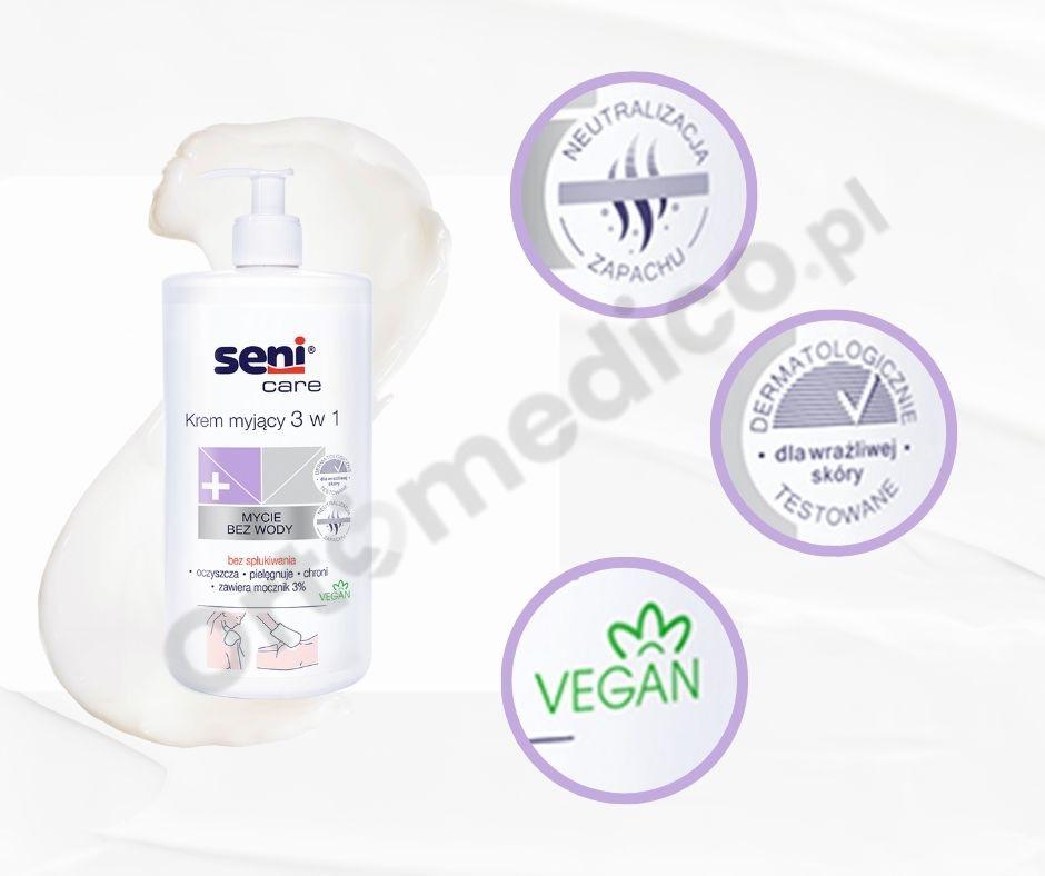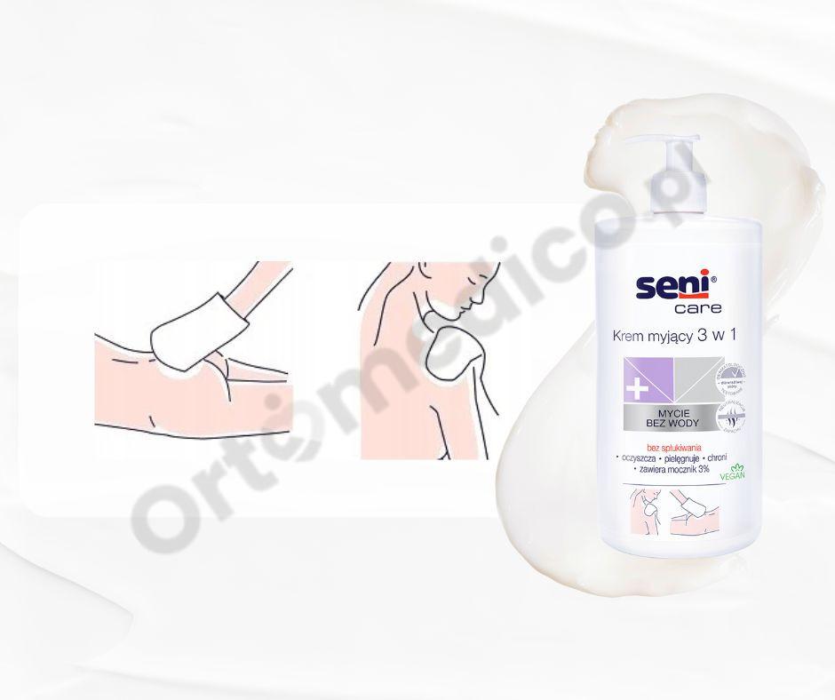 - Stosuj krem myjący Seni Care 3 w 1 zamiast wody i mydła.