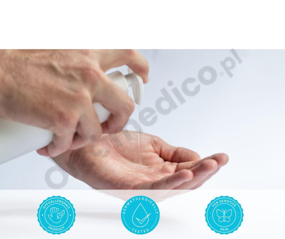 - Możliwość i komfort stosowania – dzięki aplikacji żelowej jest bardzo skuteczna, co pozwala na zastosowanie nawet przy występujących podrażnieniach. Dozownik z pompką zapewnia wygodę stosowania.