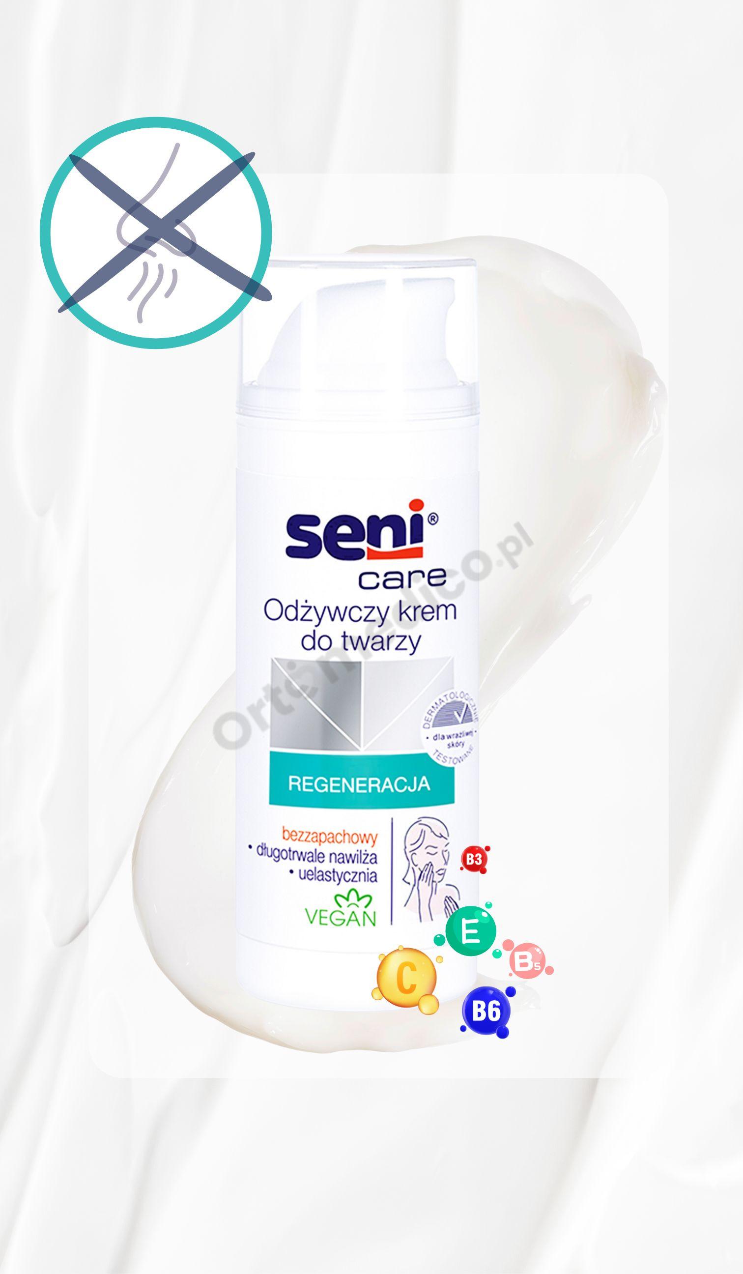 Odżywczy krem ​​Seni Care to idealny wybór do podstawowej pielęgnacji skóry. Dzięki dodaniu składników aktywnych, intensywnie regeneruje, nawilża i uzupełnia niedobory lipidów, pozostawia skórę sprężystą i pełną blasku.