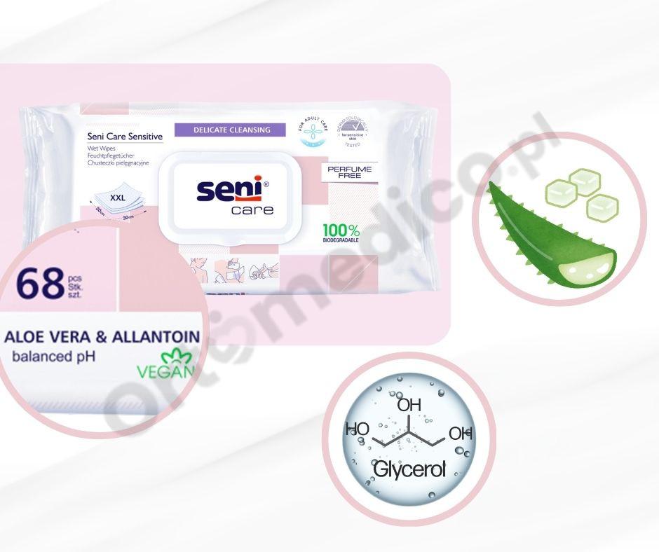 Chusteczki nawilżane Seni Care pielęgnacyjne Sensitive 68 szt.