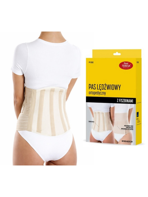 Pas ortopedyczny lędźwiowy PT0202 marki Pani Teresa Medica to wyrób medyczny przeznaczony do stabilizacji i odciążenia odcinka lędźwiowego kręgosłupa. Konstrukcja z wbudowanymi fiszbinami ogranicza nadmierną ruchomość dolnej części pleców, wspierając kręgosłup w trakcie codziennych czynności, rehabilitacji oraz rekonwalescencji po urazach. Elastyczny materiał umożliwia dopasowanie do sylwetki, a regulowane zapięcie pozwala kontrolować stopień ucisku.