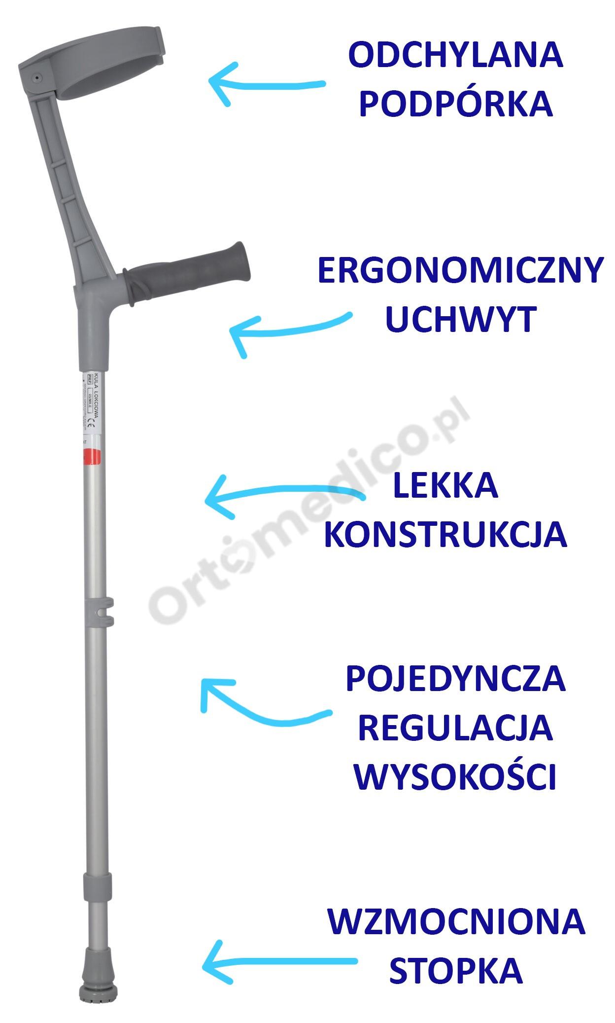 Kula łokciowa 05/MR.E z regulacją wysokości i odchylaną podpórką Mikirad zalety produktu:
