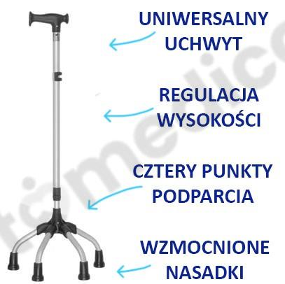 • Stabilność: cztery punkty podparcia zwiększają bezpieczeństwo i pewność ruchów.