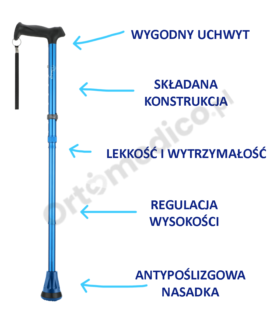 Laska inwalidzka aluminiowa składana PrimeTim Timago zalety produktu: