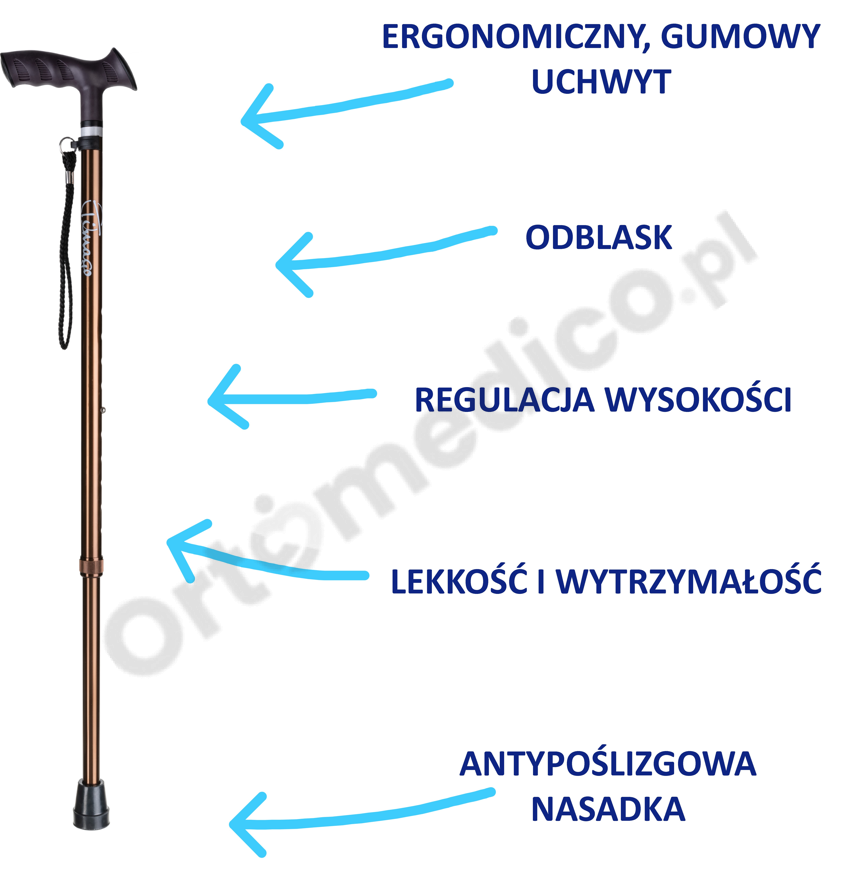 Regulowana laska inwalidzka aluminiowa– ELEGANT Timago zalety produktu: