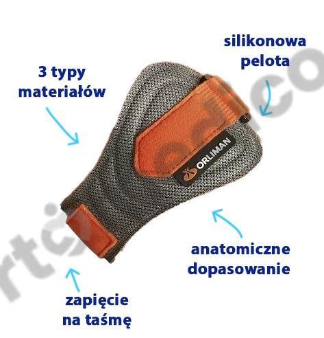 Działanie ortezy opiera się na specjalnym wzornictwie oraz zastosowaniu peloty, które wspólnie generują ucisk na obszar dotknięty bólem oraz mikromasaż. Gdy orteza jest właściwie umieszczona na przedramieniu, redukuje siłę napięcia przyczepu początkowego mięśni zginających grzbietowo nadgarstek i palce. W rezultacie, poprawia się komfort noszenia oraz funkcjonalność, a także zmniejsza się ból związany z obszarem łokcia.