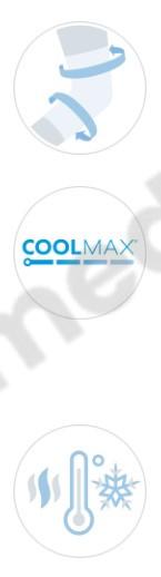 | COOLMAX | - Specjalny rodzaj włókna, charakteryzujący się wyjątkową zdolnością odprowadzania wilgoci od skóry. Dzięki temu skóra pozostaje sucha.