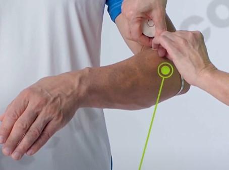 W przypadku „łokcia tenisisty” umieść kompres bliżej górnej części ramienia, a w przypadku „łokcia golfisty” – bliżej dolnej części ramienia.