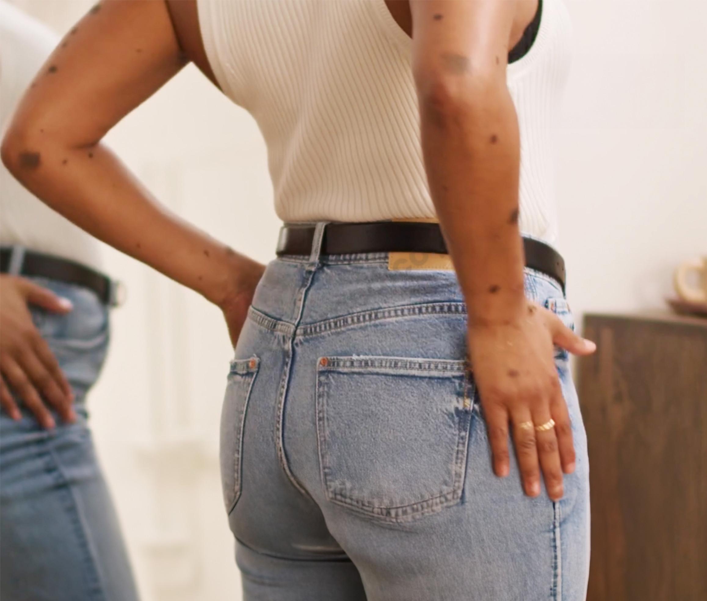 - Niski stan z falistym wykończeniem pasa – stylowy krój zwiększający pewność siebie