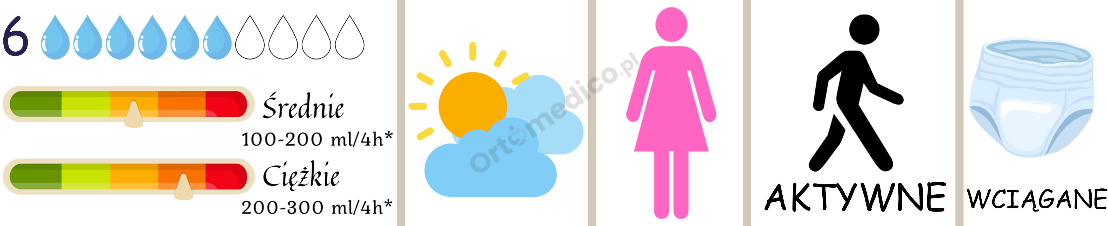 - Chłonność: poziom Plus (6 kropel) – przeznaczone na średnie nietrzymanie moczu