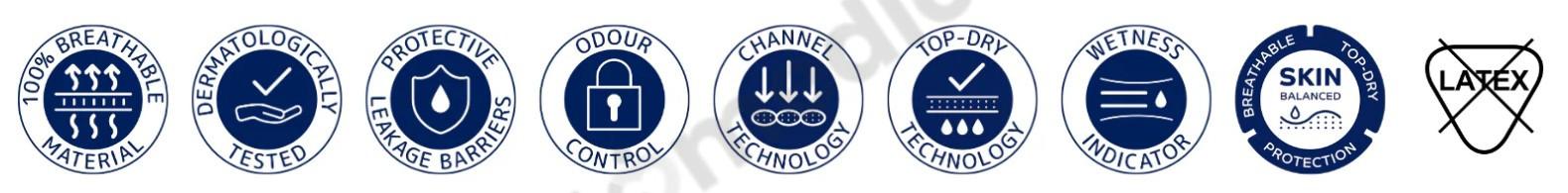 - Technologia Top-Dry – szybkie wchłanianie i uczucie suchości