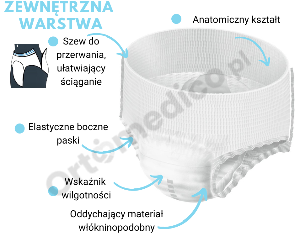 - Zakładanie jak zwykłej bielizny pozwala na samodzielne korzystanie.