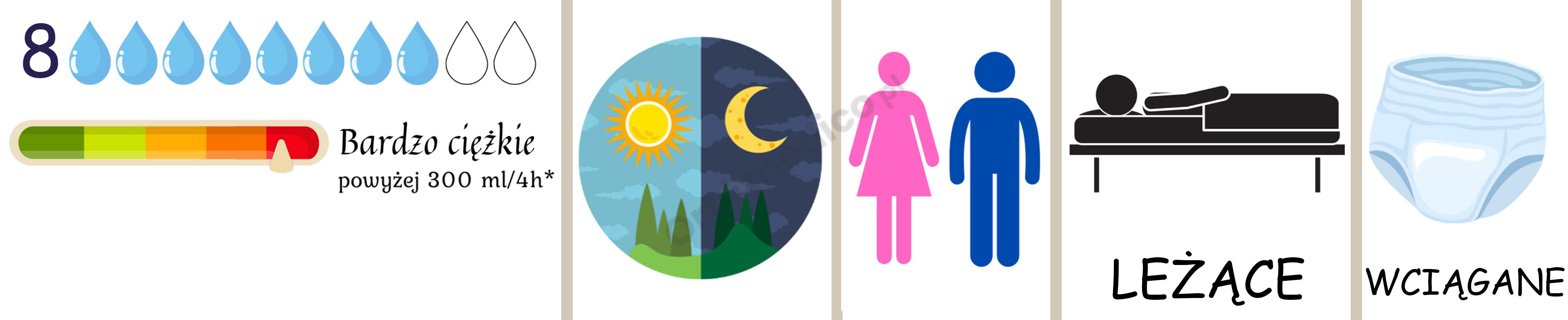 - Użytkownicy z bardzo ciężkim nietrzymaniem moczu: Produkt zapewnia maksymalną ochronę przez całą dobę.