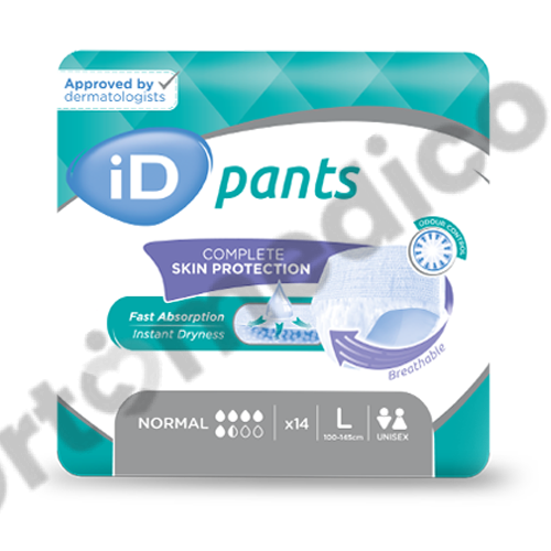 Majtki chłonne iD Pants Normal przeznaczone są dla osób z średnim stopniem nietrzymania moczu oraz przy inkontynencji kałowej. Zakładane są jak zwykła bielizna, przeznaczone zarówno dla osób aktywnych jak i dla tych o ograniczonej mobilności. Chłonność jaką posiadają te majtki to 5,5/8.