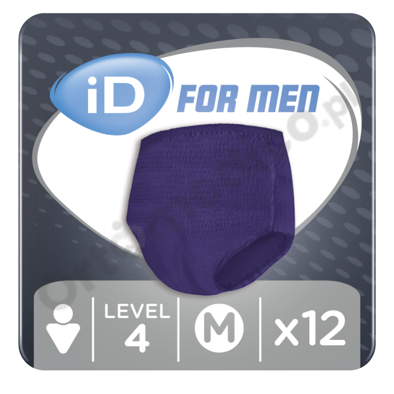 Majtki chłonne iD for Men Pants przeznaczone są dla aktywnych mężczyzn, którzy potrzebują pewnej ochrony przed nietrzymaniem moczu. iD for Men oferuje mężczyznom w każdym wieku skuteczną kontrolę nad średnim nietrzymaniem moczu. Chłonność jaką posiadają te majtki to 6/8 kropelek.
