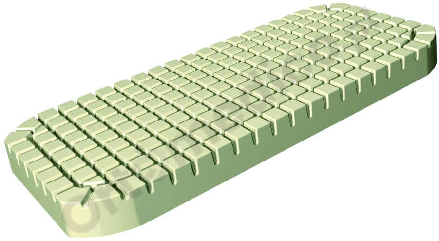 Materac APLOT jest w pełni kompatybilny z łóżkami medycznymi, co czyni go uniwersalnym rozwiązaniem w różnych warunkach opieki. Posiada cztery ścięte rogi, które ułatwiają montaż wysięgników i innych elementów wyposażenia łóżka. Jest to szczególnie przydatne w przypadku konieczności szybkiej zmiany pozycji pacjenta lub dostosowania łóżka do indywidualnych potrzeb użytkownika.