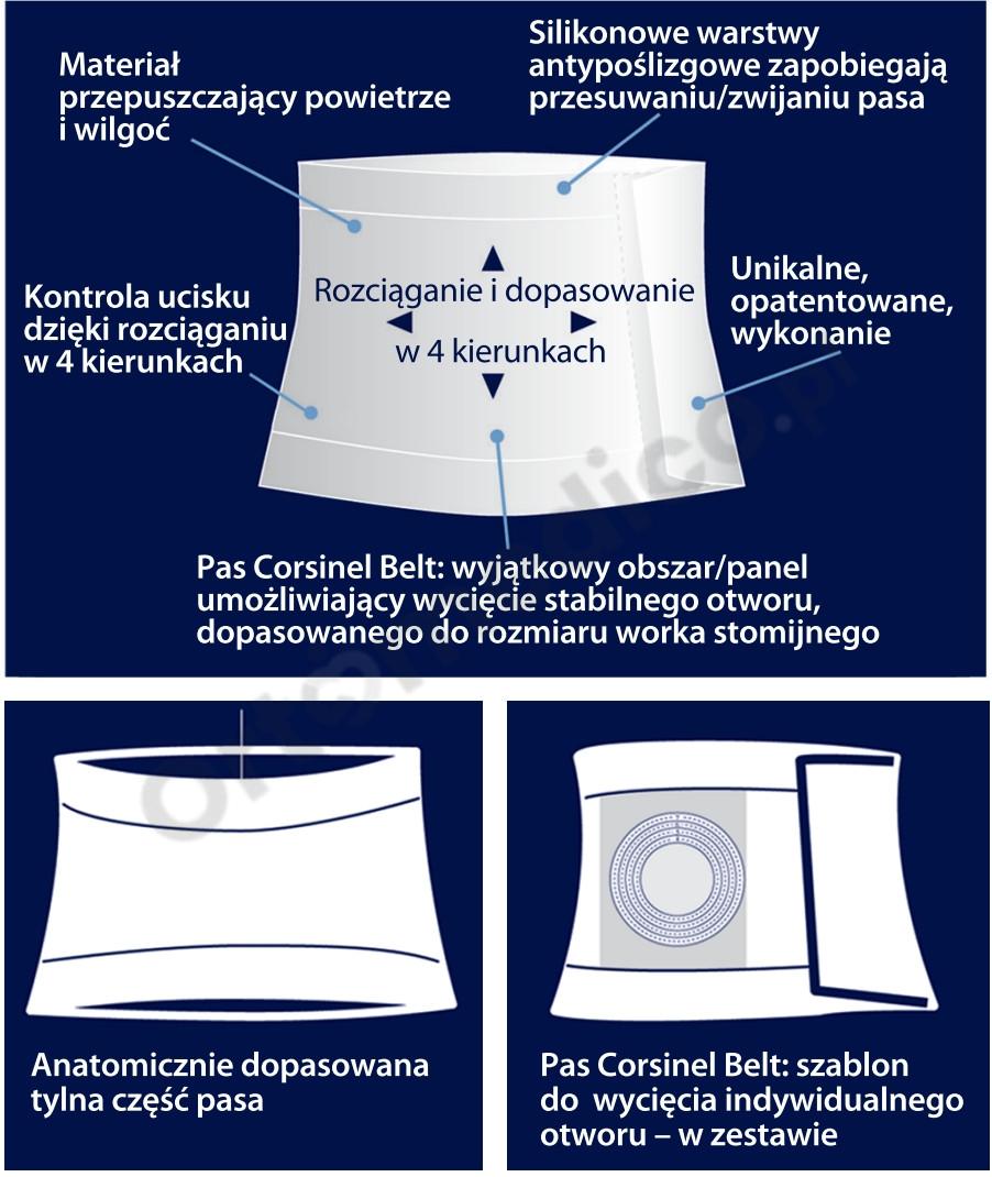 Corsinel Belt został zaprojektowany z myślą o stabilizacji i podtrzymywaniu obszaru wokół stomii i przepukliny brzusznej.
