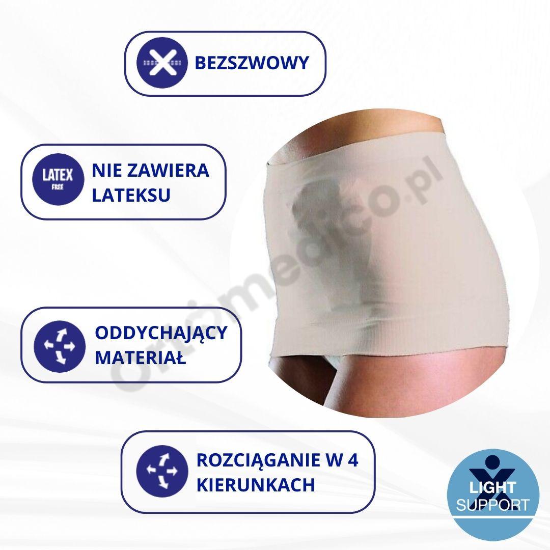 - Alergia na materiały użyte w produkcie – mimo że pas nie zawiera lateksu, w przypadku alergii na inne włókna syntetyczne należy zachować ostrożność.