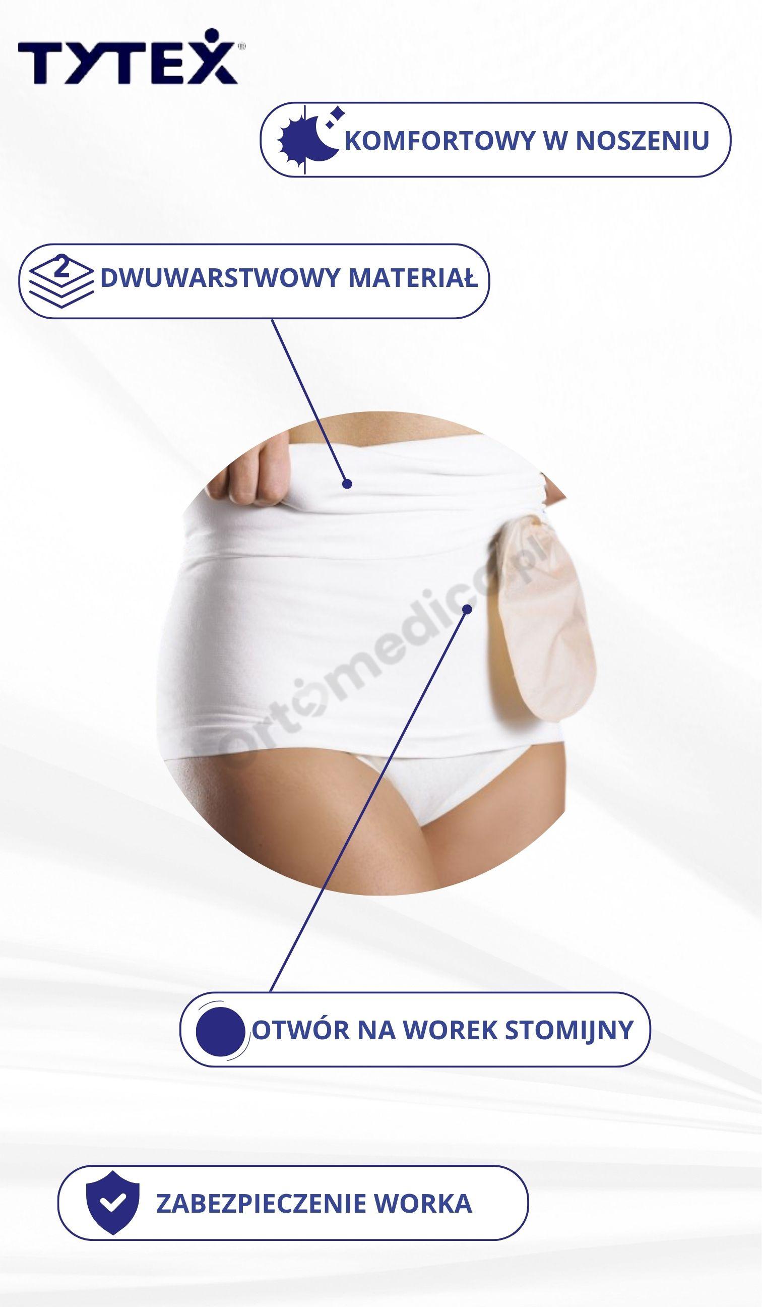 - Stabilizacja i podtrzymanie worka stomijnego w codziennym użytkowaniu.