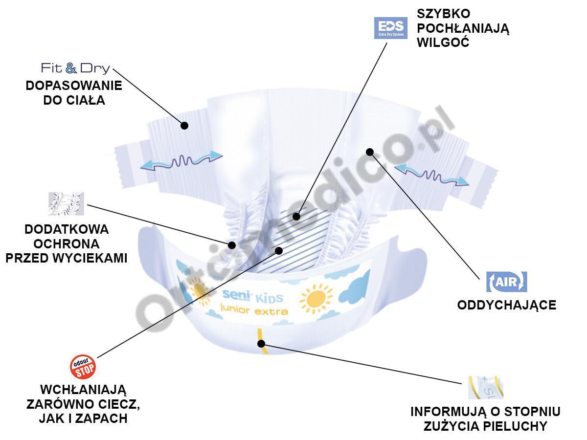 Pieluchomajtki Seni Kids Junior Extra zalety produktu