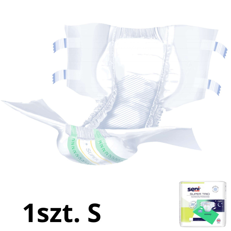 Pieluchomajtki Super Seni Trio przeznaczone są dla osób z ciężkim i bardzo ciężkim stopniem nietrzymania moczu oraz przy inkontynencji kałowej. Przeznaczone zarówno dla osób aktywnych jak i dla tych o ograniczonej mobilności. Chłonność jaką posiada ta pielucha to 8/9 kropelek, dzięki czemu idealnie nadają się również na noc.