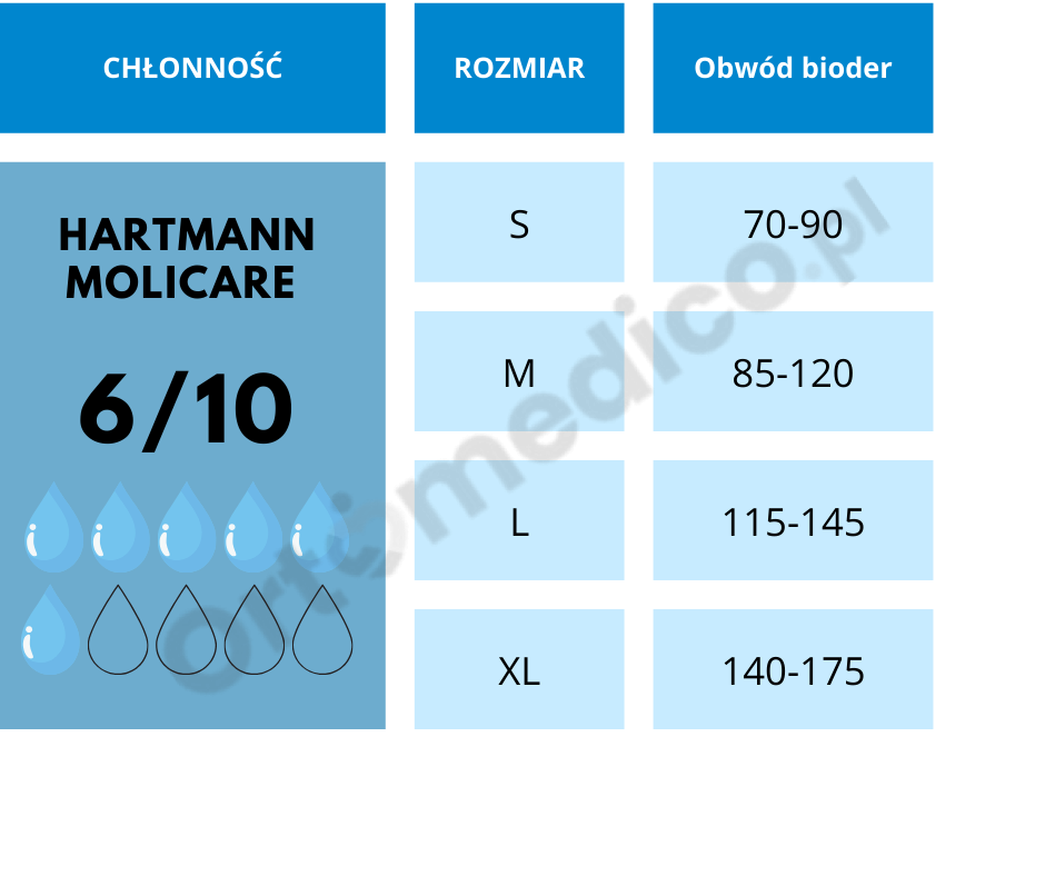 Pieluchomajtki MoliCare Premium Elastic o chłonności 6 kropel to zaawansowane rozwiązanie dedykowane osobom z umiarkowanym i ciężkim nietrzymaniem moczu (NTM). Dzięki wysokiej chłonności i nowoczesnej konstrukcji produkt doskonale sprawdza się w codziennych sytuacjach, zapewniając użytkownikom pełną ochronę, wygodę i dyskrecję. Idealne dla osób aktywnych, które chcą czuć się pewnie i komfortowo przez cały dzień.