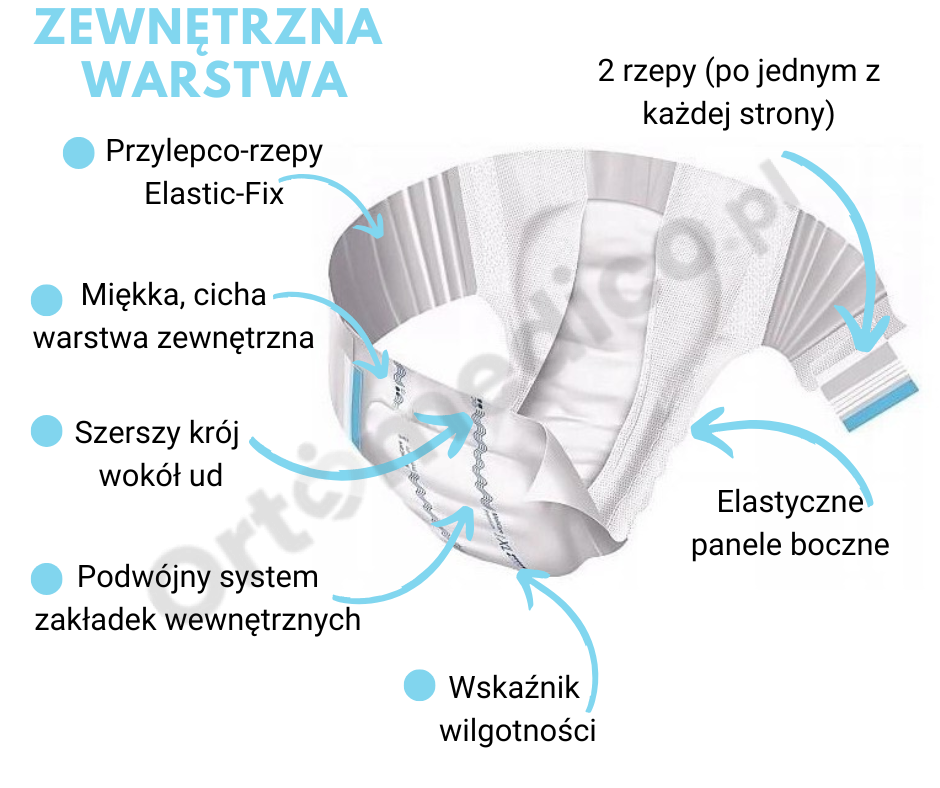 - Stabilizują pieluchomajtki na ciele, niezależnie od pozycji użytkownika.